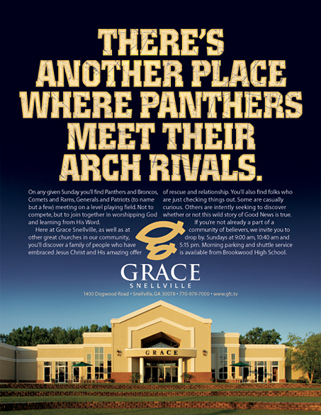 "Arch Rivals" full-page ad for local high school football program for Grace Snellville.