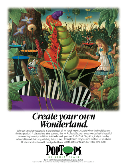 "Wonderland" full-page ad for PopTops by SculptChair. Illustration by David Bowers.