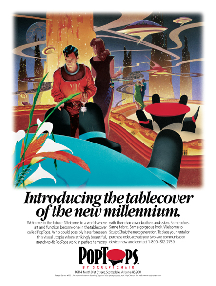 "Millennium" full-page ad for PopTops by SculptChair. Illustration by John Maggard.