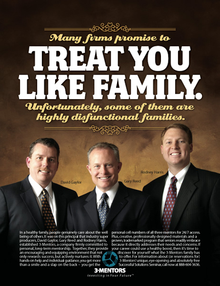 "Family" full-page ad (proposed) for 3-Mentors (annuity investment firm).